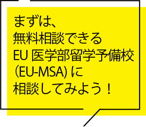 • 弊社「EU医学部留学予備校(EU-MSA)」は留学斡旋会社(エージェント)ではなく、コンサル会社です。相談者に必要な情報をお伝えします。